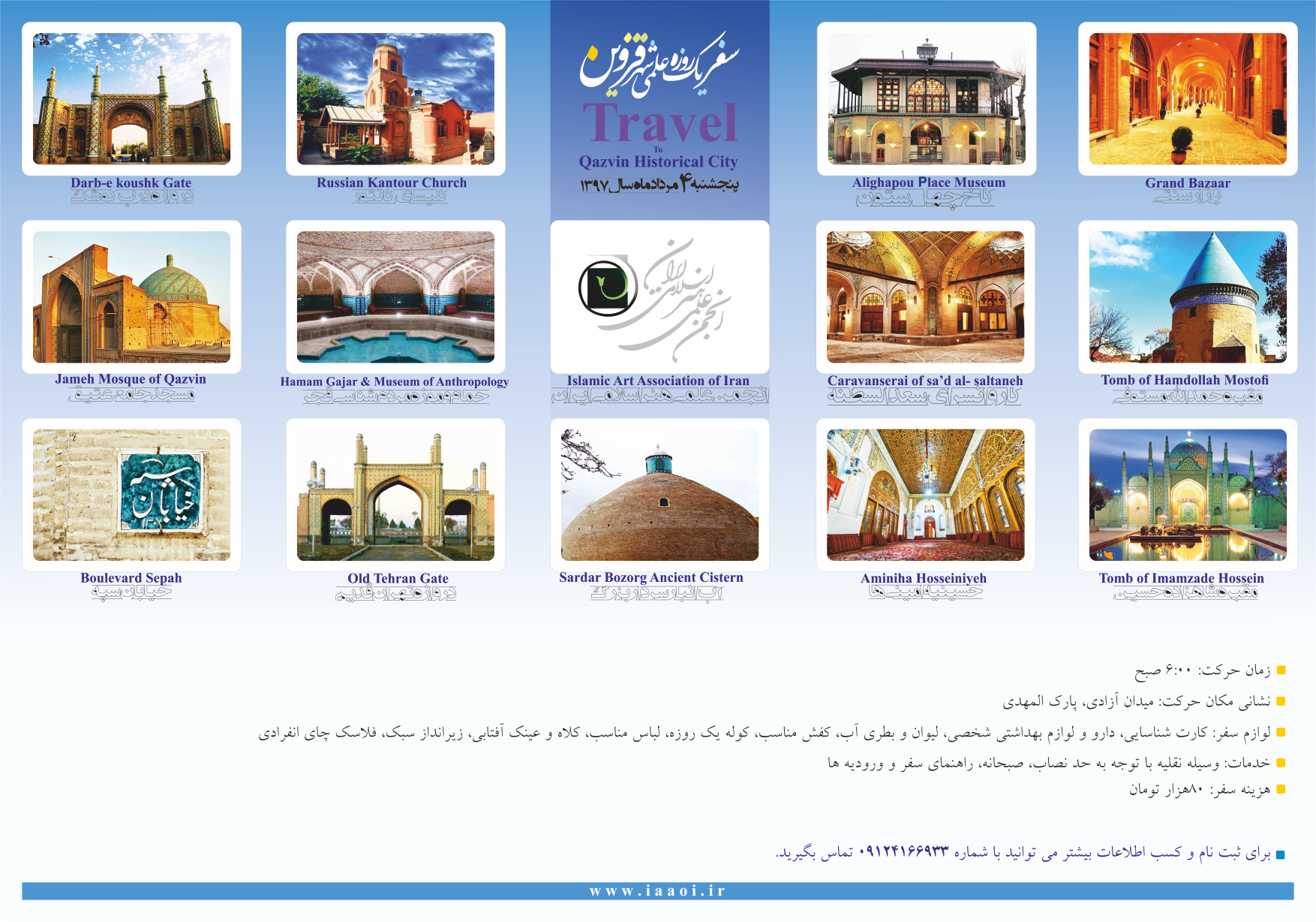اولین برنامه ایرانگردی هنری به همت انجمن علمی هنر اسلامی ایران در چهارم مردادماه ۱۳۹۷ با بازدید از آثار هنری و معماری شهر کهن قزوین